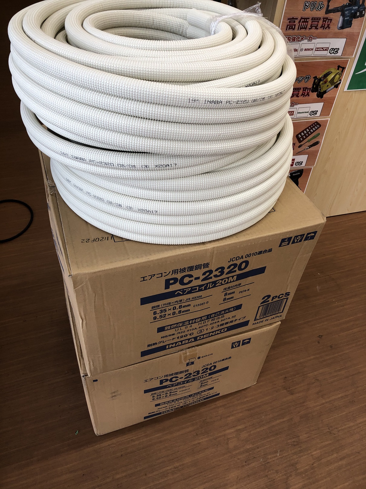 今回は因幡電工のペアコイル、2分3分の20m巻き(未使用)を、神奈川県厚木市のお客様からお売りいただきました!