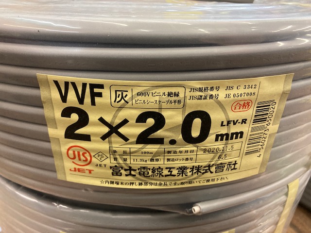 電線・電材 富士電線 VVFケーブル 2×2.0を埼玉県八潮市のお客様よりお買取りさせて頂きました👨👨👧👧👩👩👦👭🧡