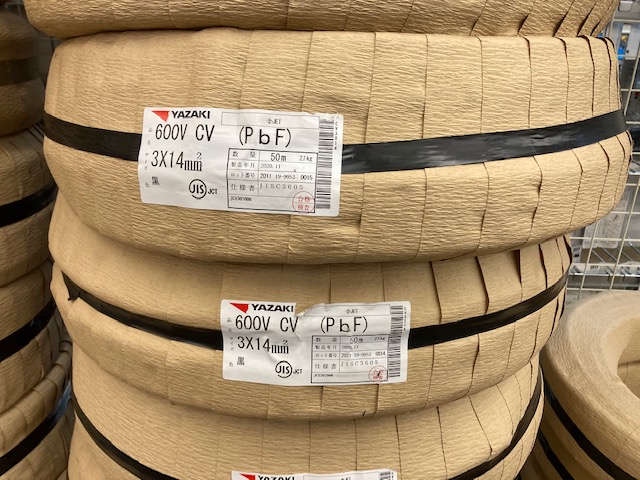 今回は矢崎電線のCVケーブル、3×14㎟の50m巻き(新品未使用)を、東京都板橋区からお売りいただきました!