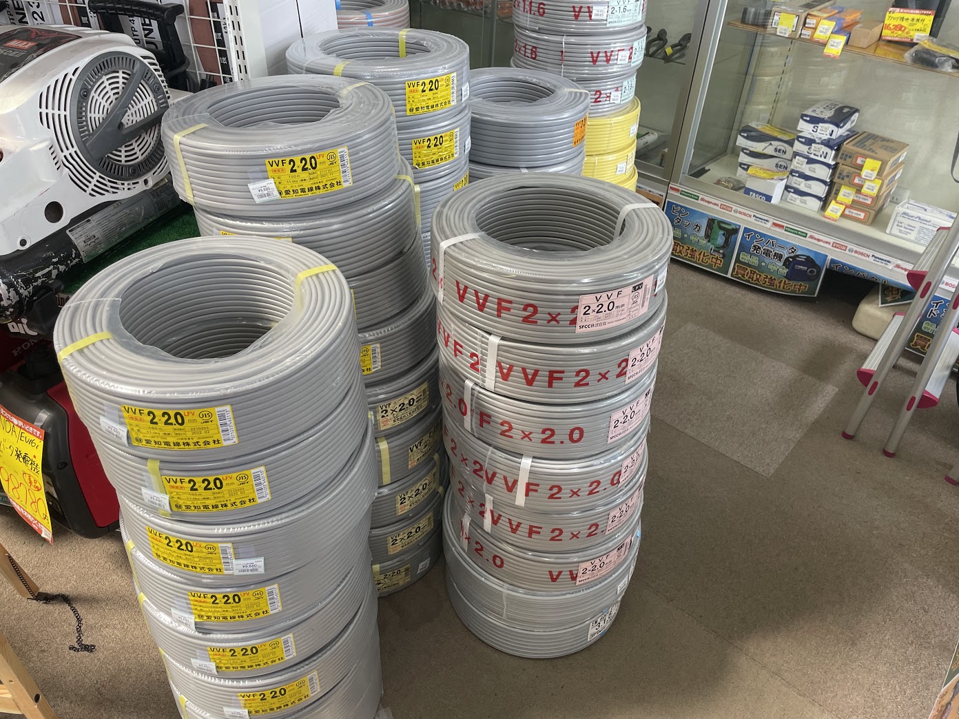VVFケーブルは常に需要がある商品になります!!特に現在は銅の市場相場が高騰している関係で、かなり当店での需要は