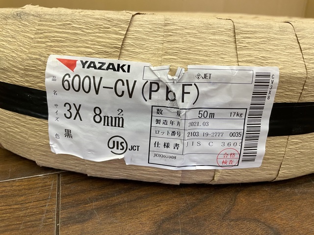 今回は矢崎電線のCVケーブル、3×8㎟の50m巻き(新品未使用)を、埼玉県戸田市のお客様からお売りいただきました!