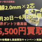 今回は矢崎電線のVVFケーブル、2×2.0mmの100m巻き(新品)を、大阪府大東市からお売りいただきました!