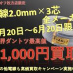 今回は弥栄電線のVVFケーブル、3×2.0mmの100m巻き(新品)を、大阪府大東市からお売りいただきました!