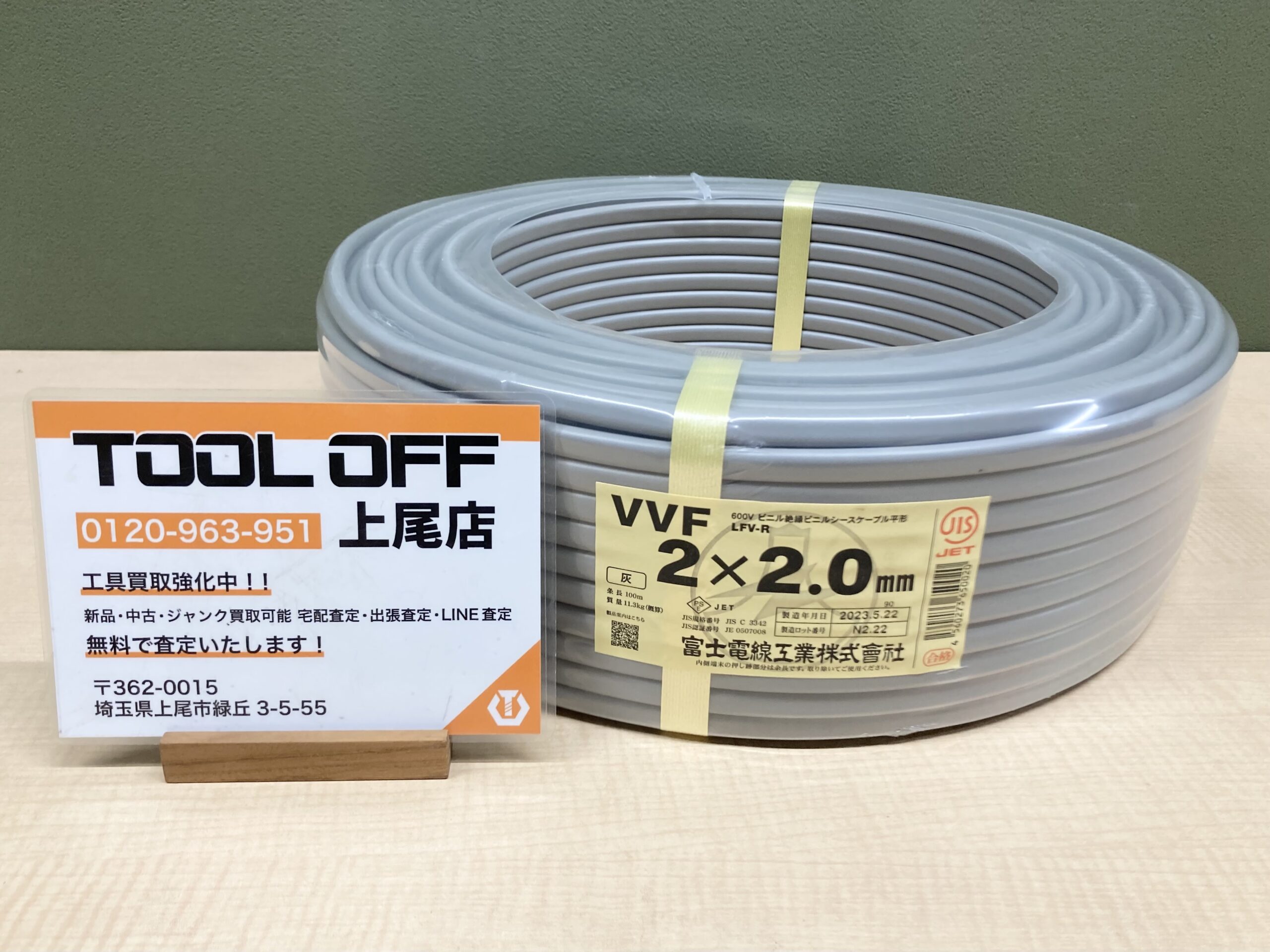 23年8月現在、上尾店ではVVFケーブルの在庫が少なくなってました・・今回はタイミングよくお問い合わせのお電話を頂いたので今回限り買取金額をアップさせて頂きました!VVFケーブルの他にペアコイルも現在在庫が限られている 😥 ので、もしご不要の未使用ペアコイルございましたらぜひ一度ツールオフオフ上尾店(☎:0120-963-951)までお問い合わせください!