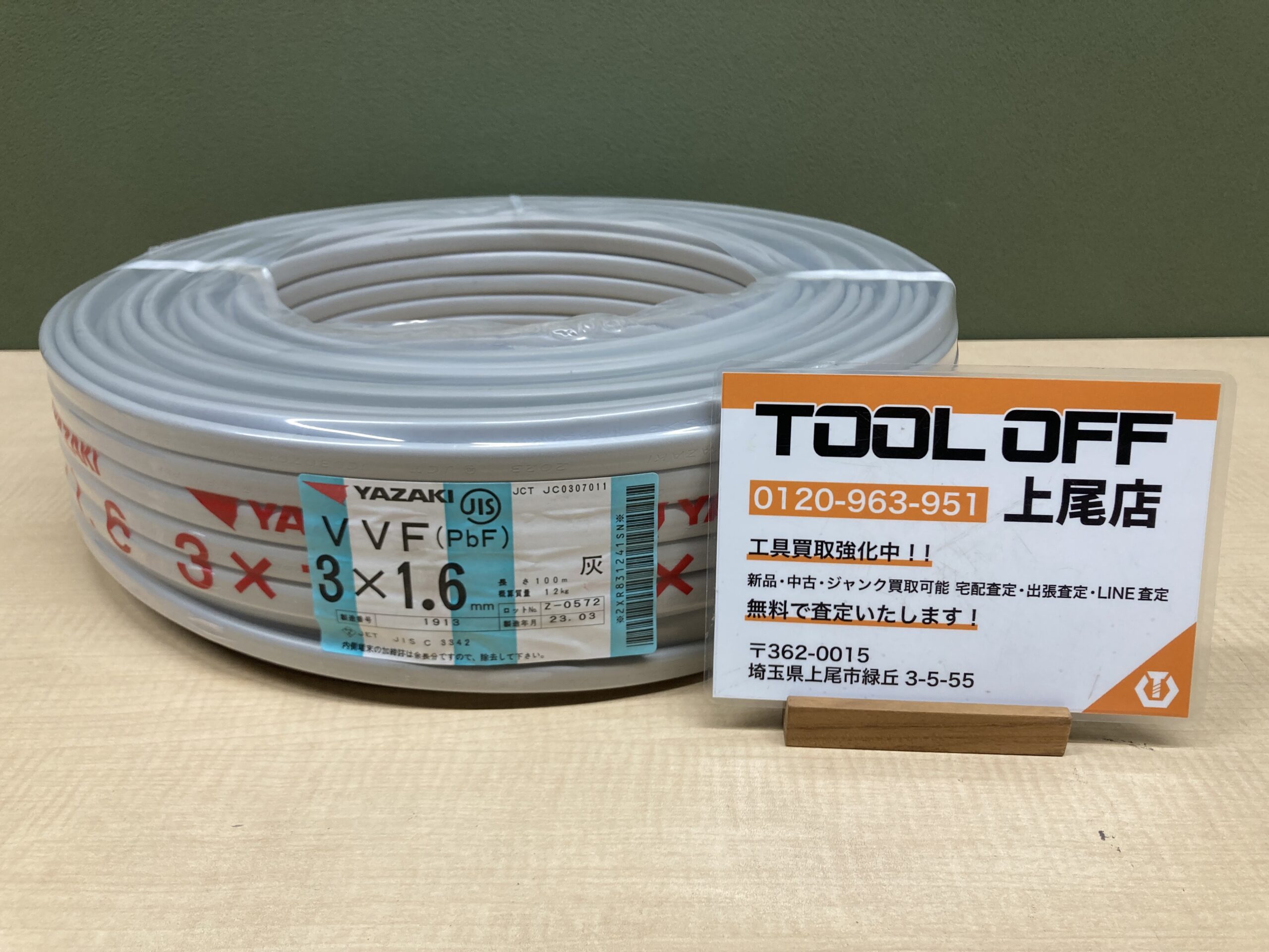 本日は 矢崎電線 VVFケーブル 3×1.6 をご紹介させて頂きました!もし「持って行って値段にならないかも・・」と不安があればぜひ一度LINE査定を試してください!もしLINEをお持ちでなければ、直接店頭へお電話(☎:0120-963-951)にて型式をお伝えいただければ査定も出来ますのでぜひぜひ一度ツールオフ上尾店(リンク)までお気軽にお問い合わせください!
