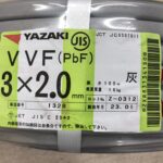 矢崎電線 VVFケーブル3×2.0(黒白赤) 100m 2023年製を東京都多摩市のお客様よりお買取りさせていただきました。