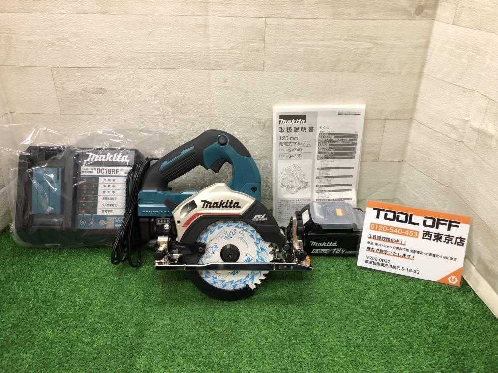 今回お持ち込み頂いたマキタ 充電式125㎜マルノコ HS475DRGXも人気の高い商品でツールオフ西東京店では常に品薄状態が続いております!