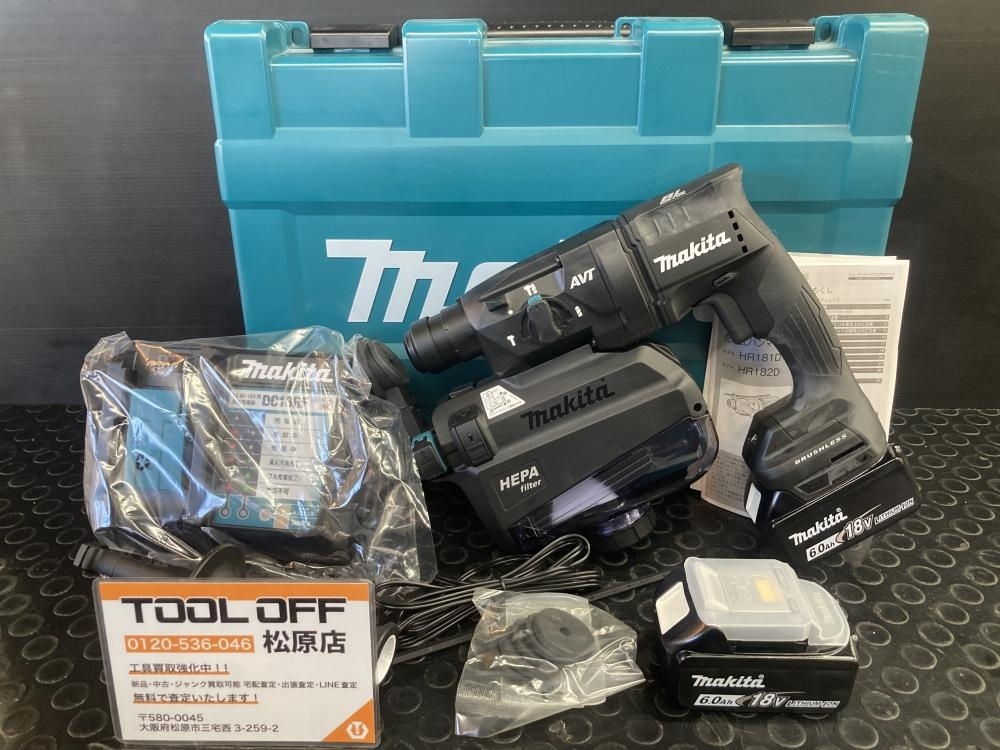 大阪府【藤井寺市】のお客様から【マキタ makita 18㎜充電式ハンマドリル 集じんシステム付 HR182DGXVB DX05 バッテリー×2 充電器 ※展示保管品】をお買取り致しました!