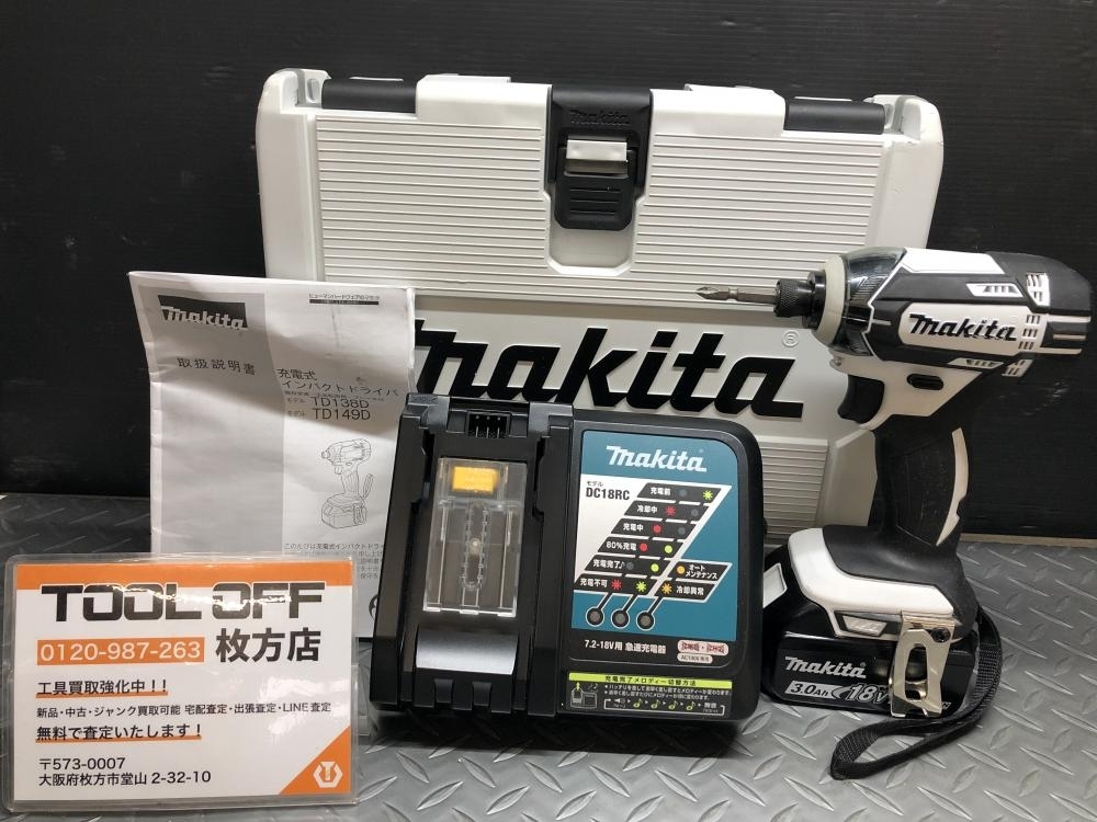 大阪府枚方市のお客様から【マキタ makita 充電式インパクトドライバ TD149D バッテリー(BL1830B)・充電器付 充電回数2回】をお買取り致しました!