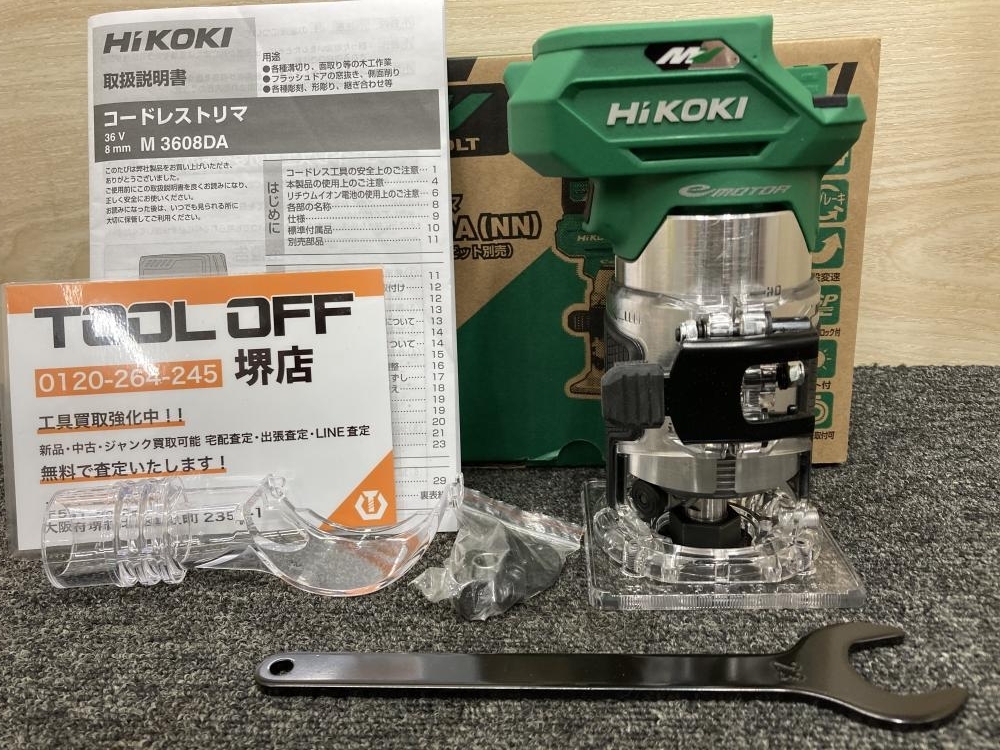 今回お持ち込みいただいた工具は『AC品を超えたハイスピード切削!HiKOKI独自のワンハンドオペレーション!ベース調整ワンタッチレバー!』【HiKOKI ハイコーキ 36V マルチボルトコードレストリマ M3608DA(NN) 】です!本体のみのお持込みでしたが、箱付きの美品でしたので今回のお買取り金額となりました!