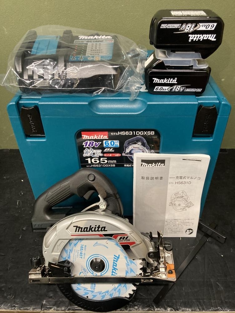 今回は型枠からきざみ、造作作業まで幅広くこなせる、マキタ製165mm充電式丸のこ HS631DGXSB(新品)を東京都江戸川区からお売り頂きました。