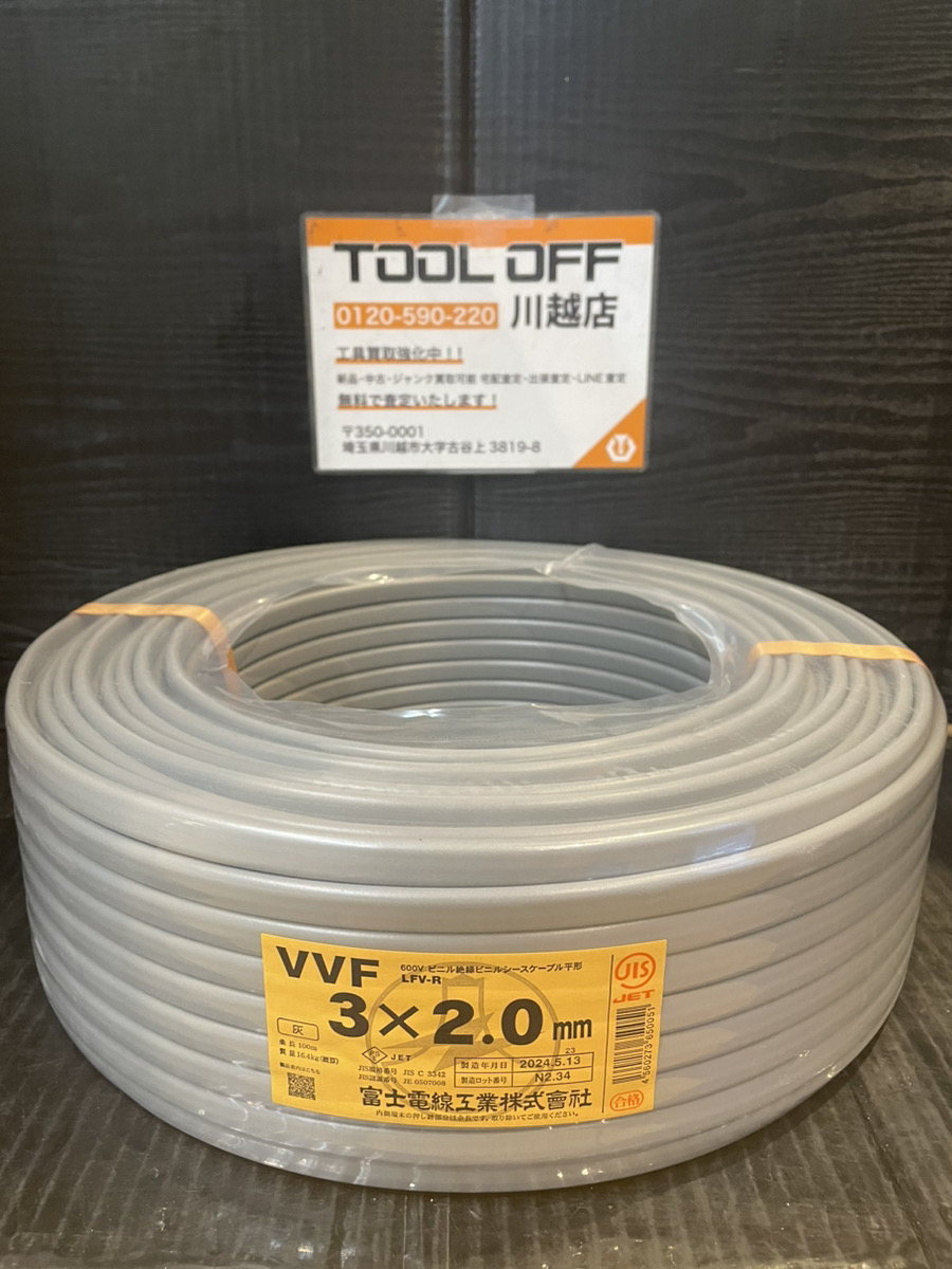 特にVVFケーブル、ペアコイル(冷媒管)、IVケーブル、CVケーブルなどはツールオフの中でもトップクラスに需要の高い商品のため買取も特別頑張らせていただいております。