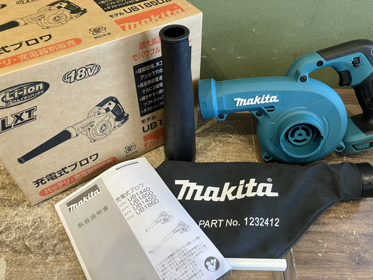 makita 充電式ブロワ UB185DZはコンパクトサイズで集じん機能用のダストパックもついているので、非常に便利です!