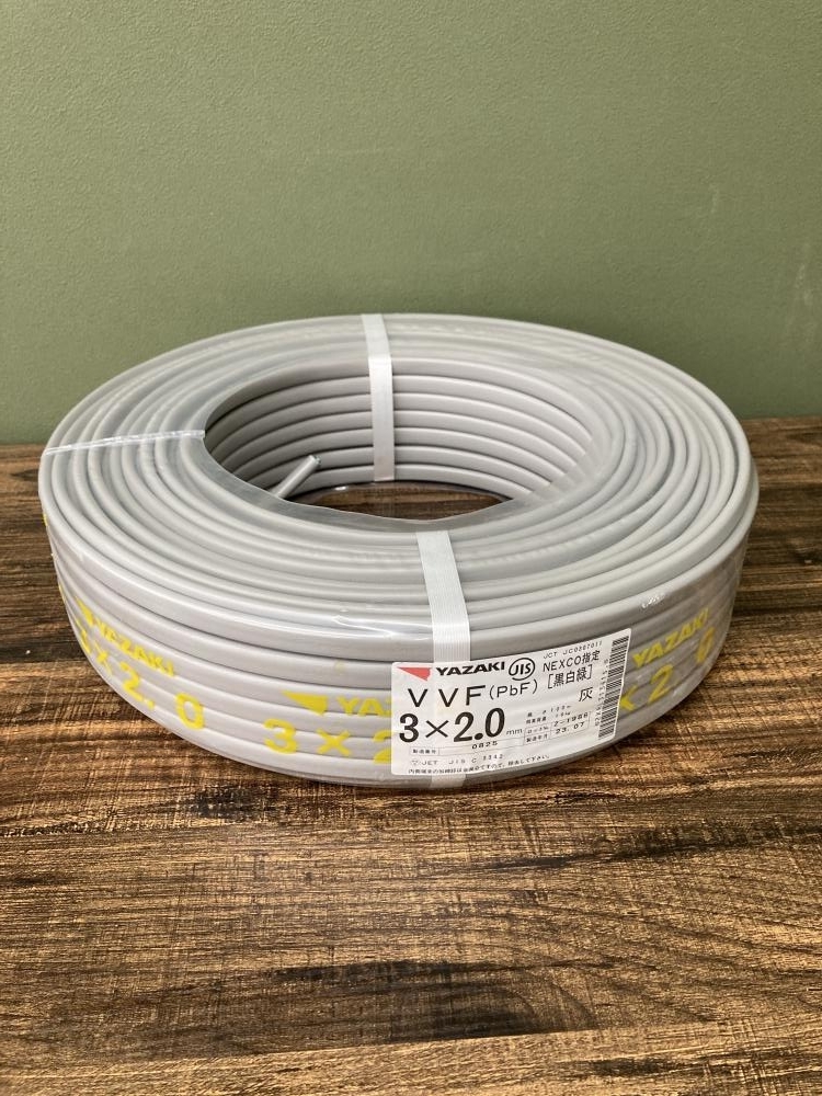 ▷YAZAKI VVFケーブル 3×2.0 黒白緑は高額買取!