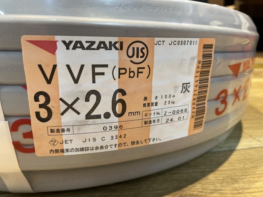 ▷矢崎電線 VVFケーブル 3×2.6 電線 は高額買取!