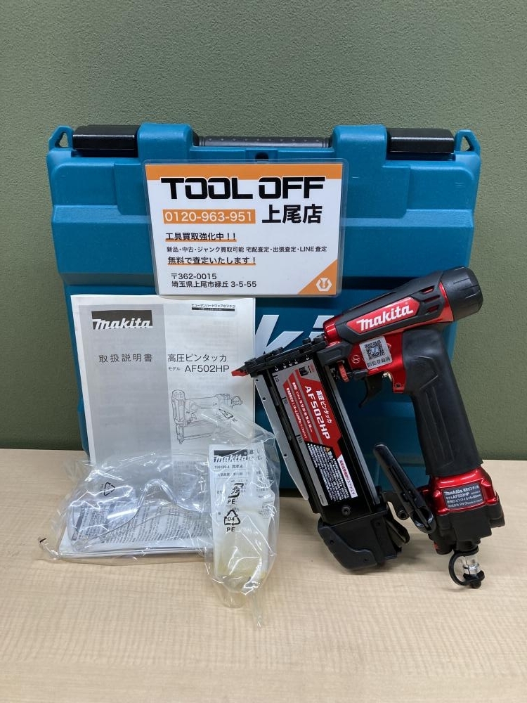 今回お買取りしたのは、未使用品の「makita マキタ 高圧ピンタッカ AF502HP」。