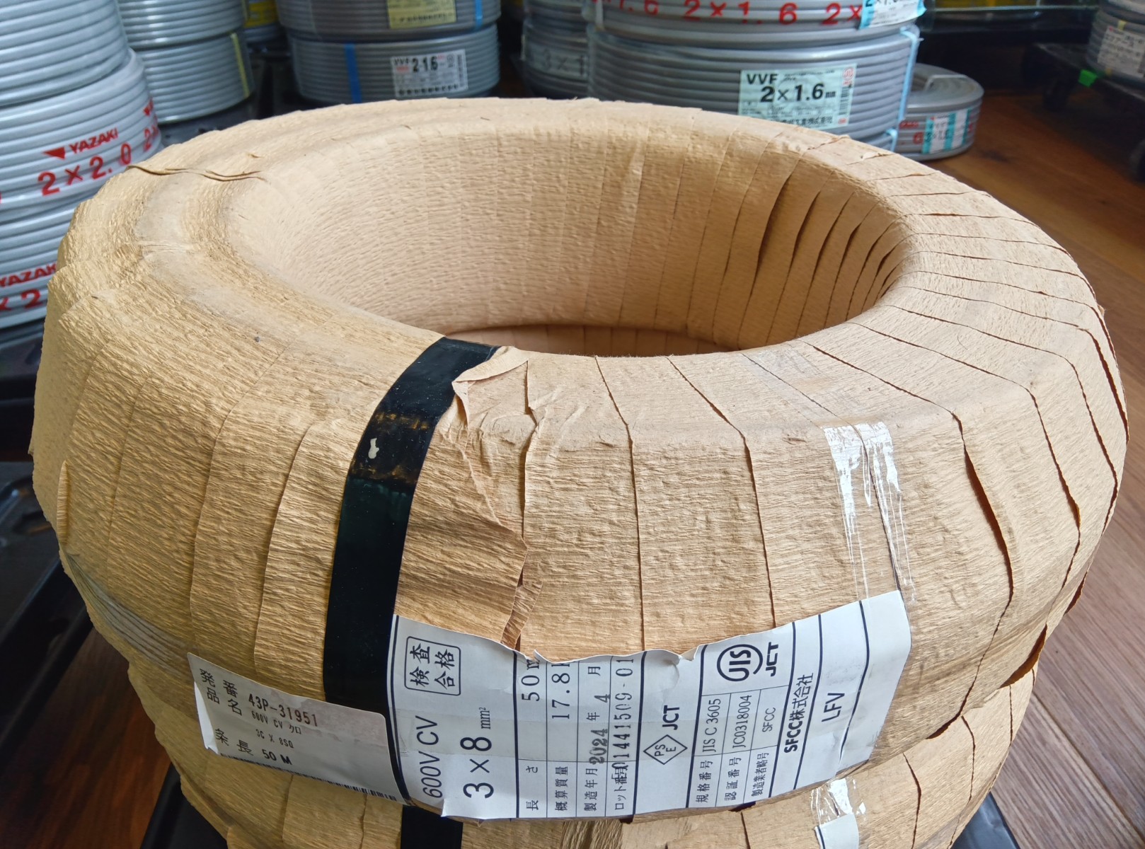 SFCC CVケーブル 3C×8SQ 50mを北海道札幌市のお客様よりお買取りさせていただきました。