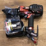 高圧釘打ち機はその名の通り、高圧にした空気を使って釘を打つ工具です。