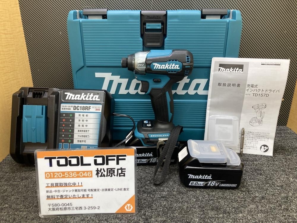 大阪府【八尾市】のお客様から【マキタ makita 充電式インパクトドライバ バッテリ×2 充電器 TD157DRGX 18V6.0Ah】をお買取り致しました!