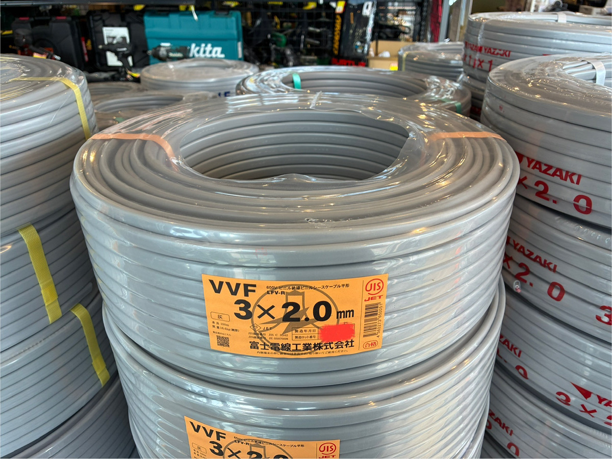 ツールオフ仙台店ではさまざまなメーカーのVVFケーブルを取り扱っておりますが、富士電線のVVFケーブルを選んで購入する方も多数いらっしゃいます。