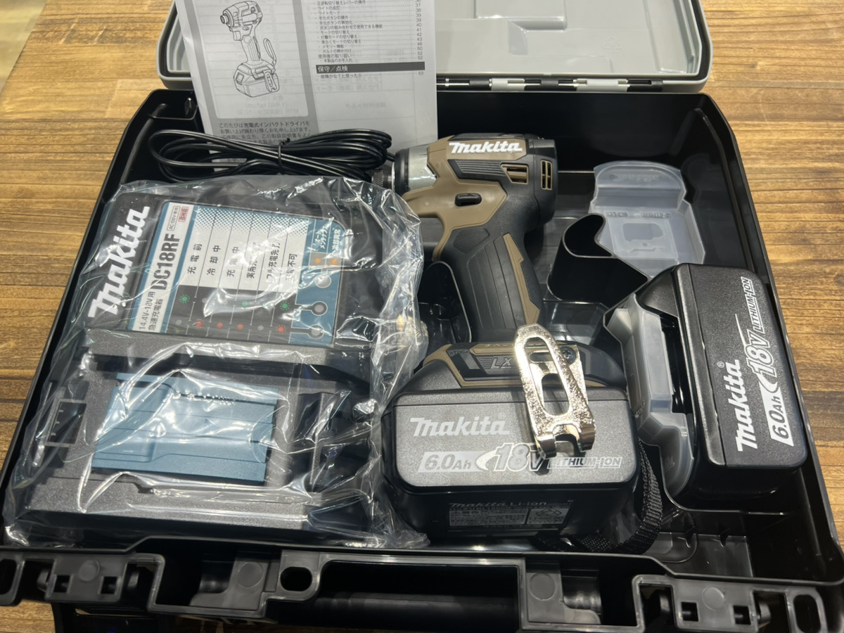 使用感はあるものの、マキタ製品かつ現在18Vのインパクトドライバでは最新モデルで6.0Ahバッテリーの状態も良く、セット価格で高価買取させていただきました!
