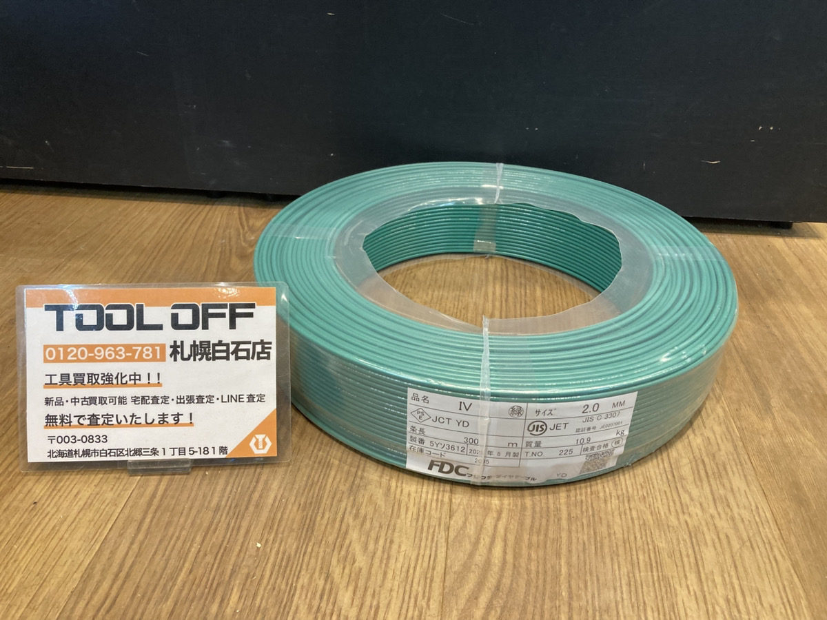 FDC フジクラ IVケーブル 2.0mm 300m 緑シリーズは新品にて高額買取されやすいですが、