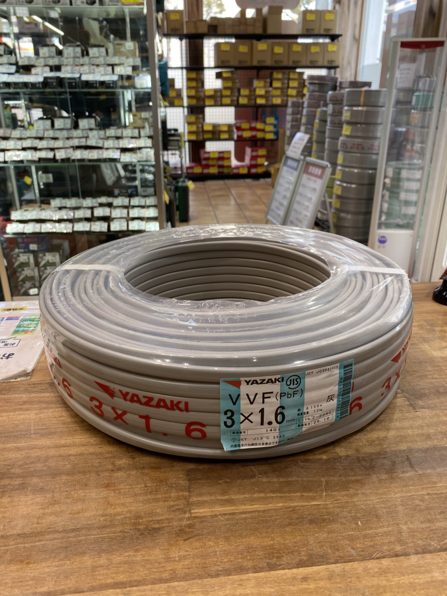 買取実績!【矢崎 YAZAKI/VVFケーブル/3×1.6 100m】 広島県広島市のお客様から【矢崎 YAZAKI/VVFケーブル/3×1.6 100m】をお買取り致しました! 新品・未使用品大歓迎です! 少しでも高く売りたいとお考えの方はぜひ一度広島店まで足を運んでいただければと思います!! お電話でも査定は可能ですので、お気軽にお問い合わせくださいませ!!