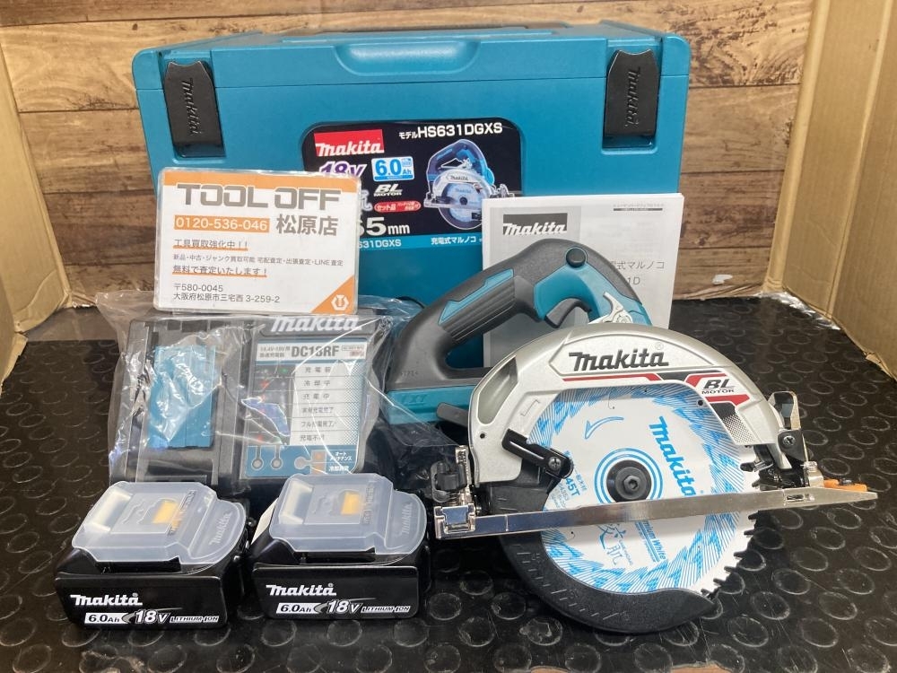 今回は型枠からきざみ、造作作業まで幅広くこなせる、マキタ製165mm充電式丸のこ HS631DGXSB(新品)を大阪市中央区からお売り頂きました。