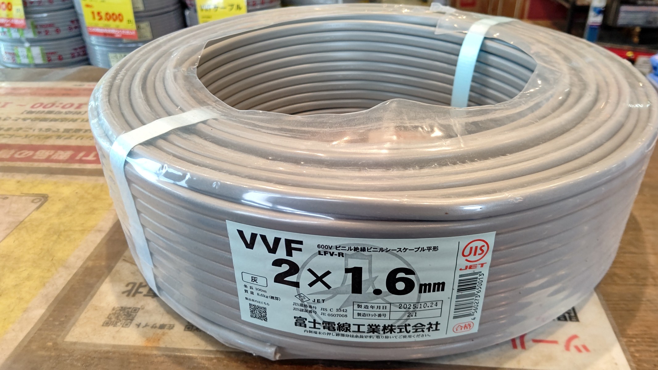 宮城県塩竃市のお客様より、富士電線の「VVFケーブル 2×1.6(未使用品)」をお買取りさせていただきました!