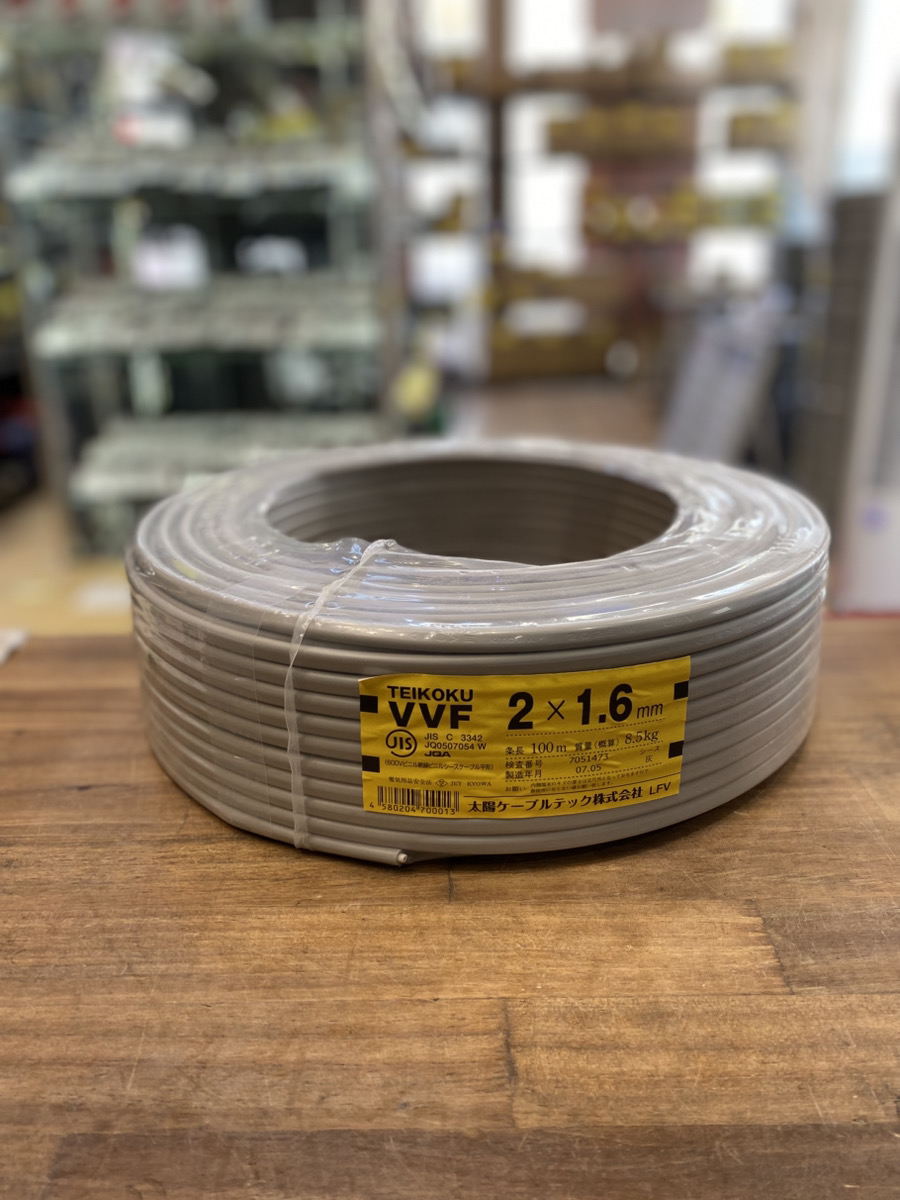 買取実績!【太陽ケーブルテック/VVFケーブル/2×1.6 100m】 広島県呉市のお客様から【太陽ケーブルテック/VVFケーブル/2×1.6 100m】をお買取り致しました! 新品・未使用品大歓迎です! 少しでも高く売りたいとお考えの方はぜひ一度広島店まで足を運んでいただければと思います!! お電話でも査定は可能ですので、お気軽にお問い合わせくださいませ!!