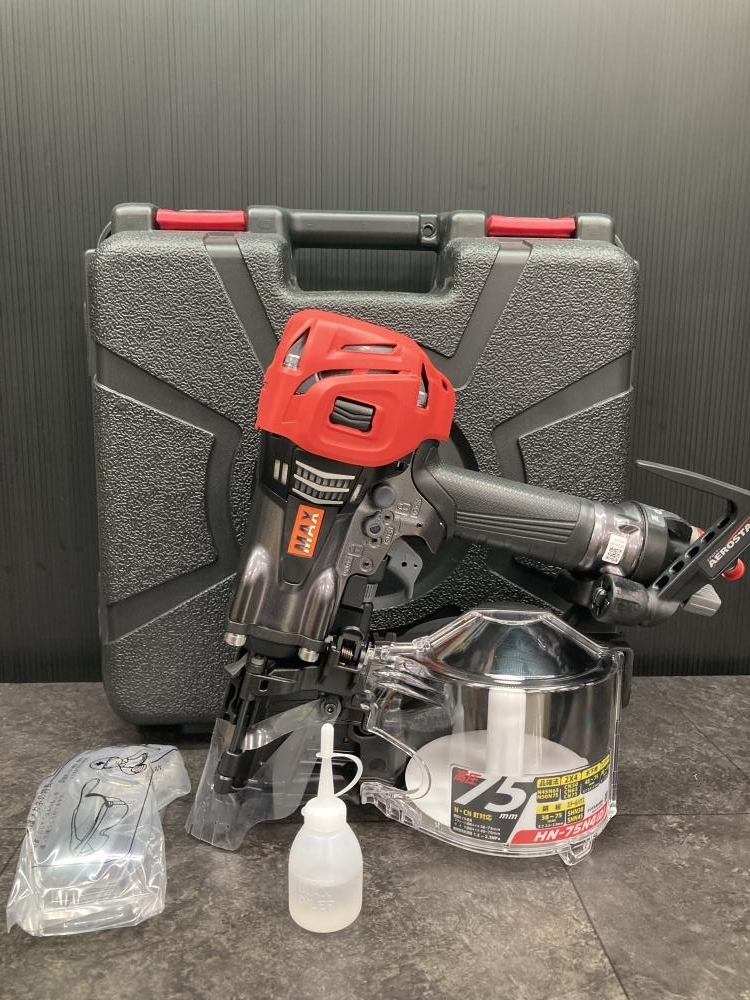 MAXの75mm高圧釘打ち機 HN-75N4(D)-Gは、木造建築や内装工事などで使用される高圧エア工具で、パワフルな打ち込み性能と安定した作業性が特徴のプロ向けモデルです。🔩(≧▽≦)/