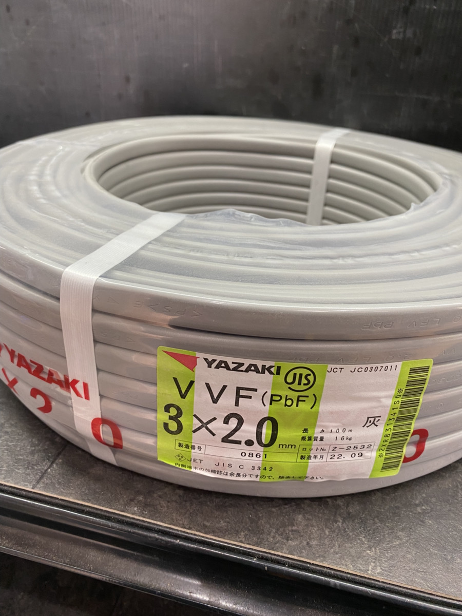 買取実績!【矢崎電線/VVFケーブル/3×2.0 100m】 広島県広島市のお客様から【矢崎電線/VVFケーブル/3×2.0 100m】をお買取り致しました! 新品・未使用品大歓迎です! 少しでも高く売りたいとお考えの方はぜひ一度広島店まで足を運んでいただければと思います!! お電話でも査定は可能ですので、お気軽にお問い合わせくださいませ!!