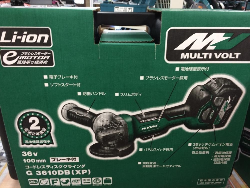日立工機 100mm充電式ディスクグラインダ G3610DB(XP)