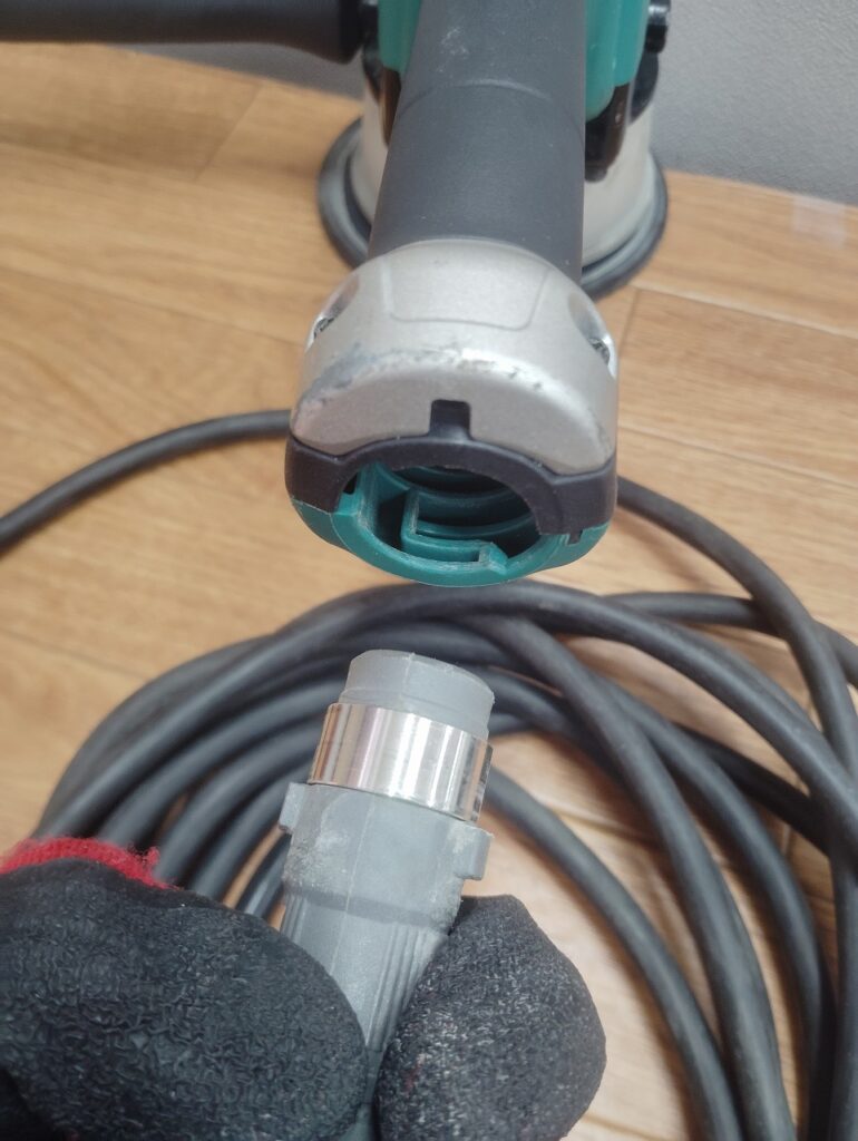 また、コンセントから作業場所まで距離がある場合はこちらを着脱して、工具を交換することもできます。