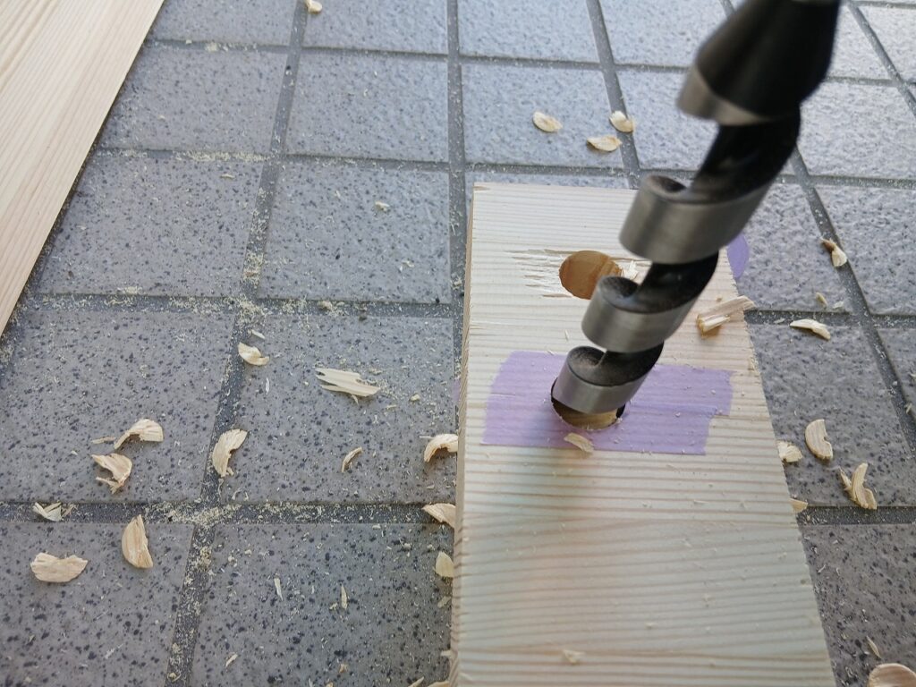 木材にドリルで穴を開ける