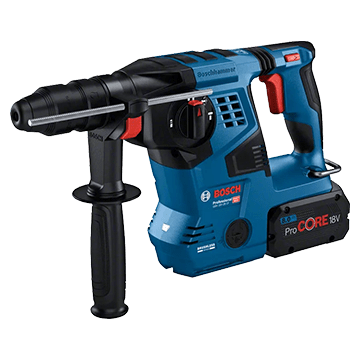 特徴:28mmクラスの18Vハンマドリル。GBH18V-26Fよりも高出力で、コネクティビティ機能(CFモデル)も備えています。