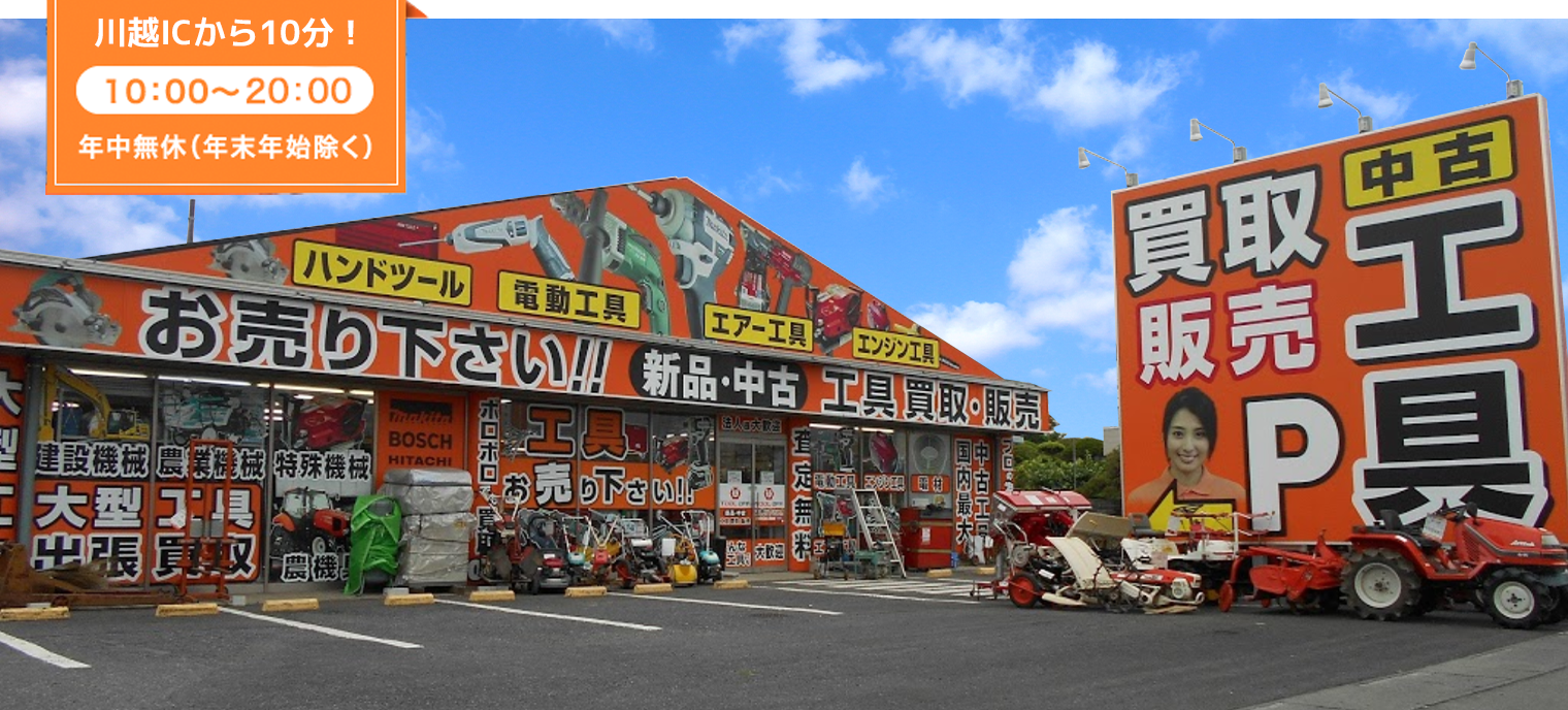 川越市内はもちろん、さいたま市、所沢市、狭山市など周辺地域からもご来店いただいており、地域密着型のサービスを心がけています。大型工具や特殊な機材の買取も得意としており、どんな状態の工具でも高く評価します。宅配買取サービスも近隣エリアまで対応していますので、ぜひご相談ください。